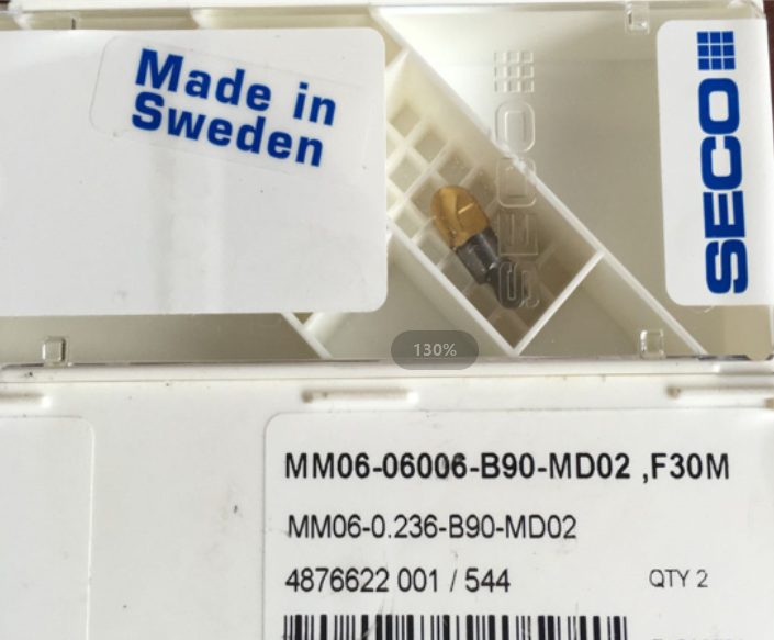 - 产品摘要:铣刀片 瑞典山高,MM16-16019-R60A30-M06 F40M,山高数控刀片