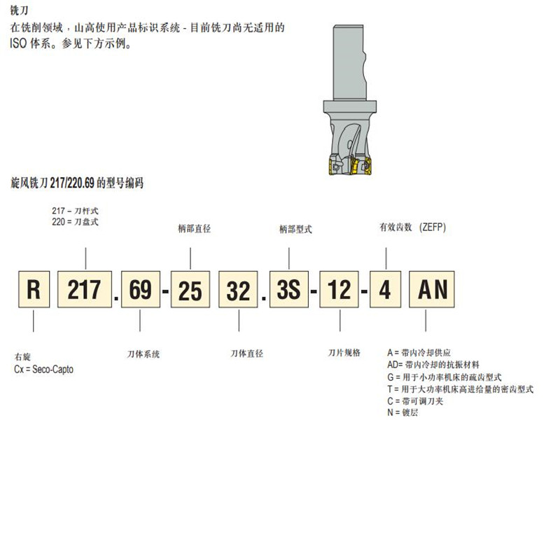 山高数控铣刀R217.69-1820.0-06-4AN方肩铣刀